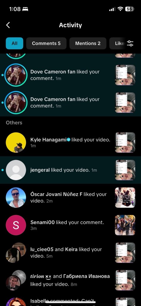 His content has also received engagement from Kyle Hanagami, Dove Cameron’s choreographer and a well-known figure within the music and dance industry. This interaction connects DovelyTom’s work to individuals within Dove Cameron’s professional creative circle.